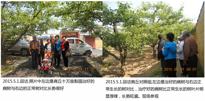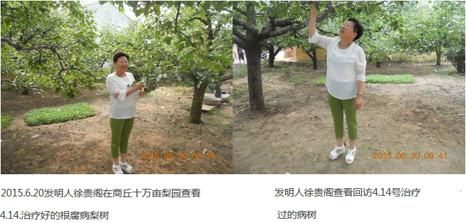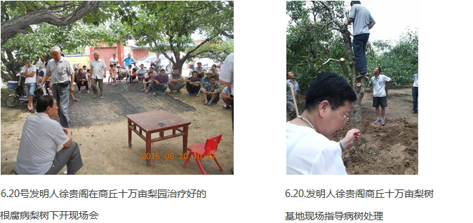 2015.6.20.發(fā)明人徐貴閣現(xiàn)場(chǎng)指導(dǎo)梨樹(shù)根腐病 6.21.商丘現(xiàn)場(chǎng)指導(dǎo)方法