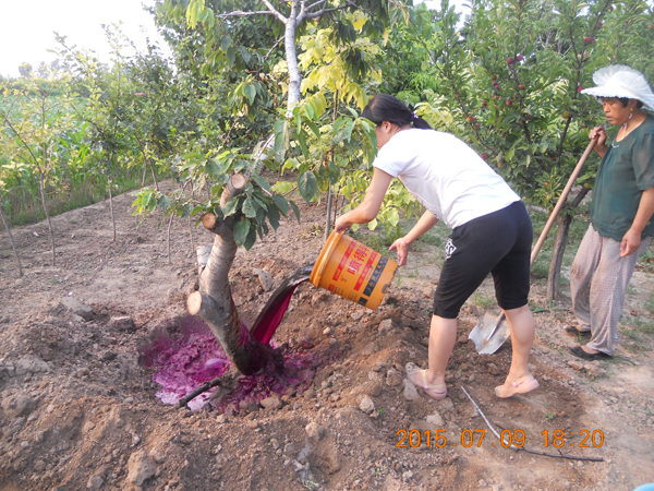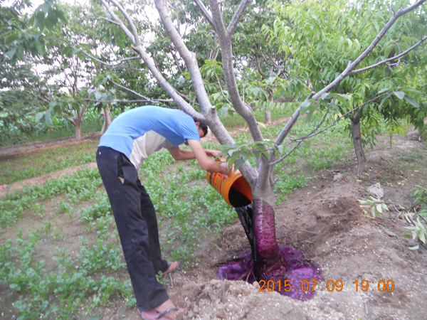 2015.7.9采用滑縣龍?zhí)┬焓弦宦钒l(fā)生物技術(shù).櫻桃樹(shù)“根腐病”現(xiàn)場(chǎng)