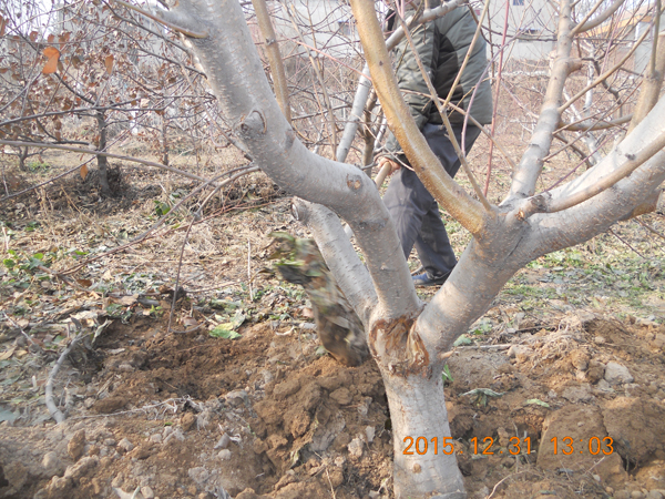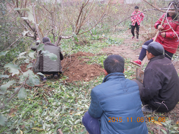 2015.11.8.河南滑縣龍?zhí)┥锟萍加邢薰景l(fā)明人徐貴閣女士滑縣大型桃園根瘤菌、根腐病、桃樹流膠病、現(xiàn)場(chǎng)查看與治療