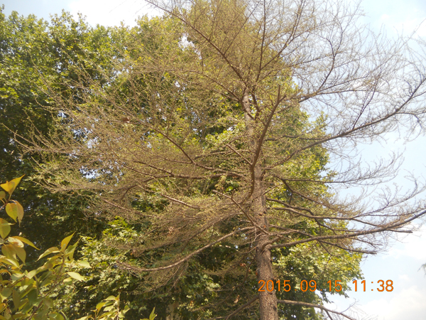 河南省黃河迎賓館雪松根腐病藥物后變化情況,36天