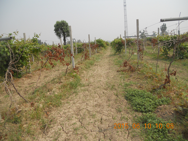 2015.6.10.發(fā)明家徐貴閣女士回訪對(duì)比5.10號(hào)沒有進(jìn)行治療的葡萄病樹全部死亡。